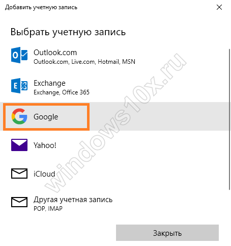 Добавим аккаунт с Гугл. Жмем на добавление и выбираем Гугл.
