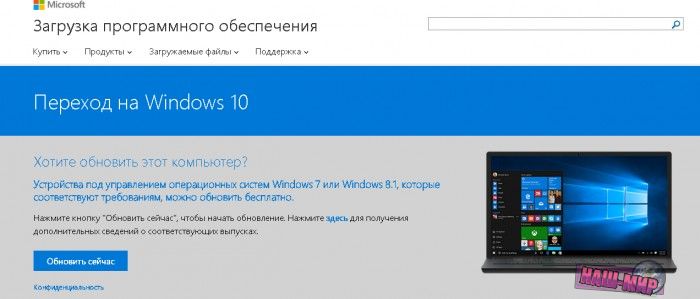 Нажмите кнопку "Обновить сейчас", чтобы начать обновление.