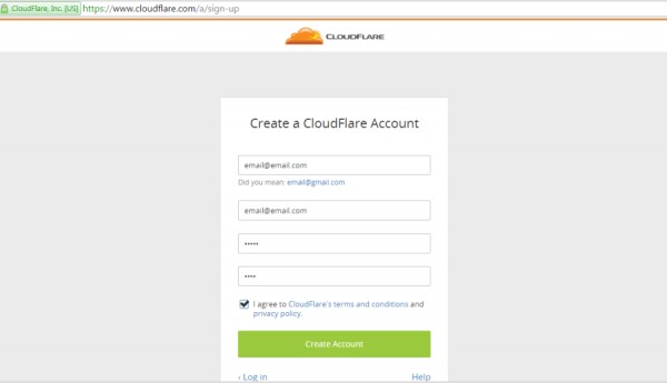 Переходим на страницу https://www.cloudflare.com/a/login