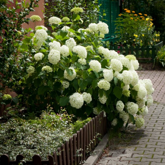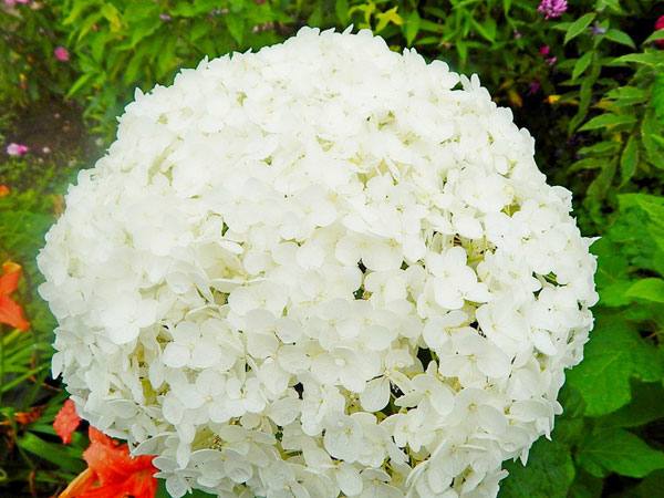 Гортензия древовидная относится к наиболее неприхотливым декоративным кустарникам. Она быстро укореняется, в охотку растет, редко поражается вредителями и болезнями, легко зимует. Садоводов она радует крупными плотными соцветиями, которые украшают куст всю вторую половину лета. Интересно, что любуемся мы чашелистиками бесплодных цветков, мелкие же фертильные цветки гортензии декоративностью не обладают.
