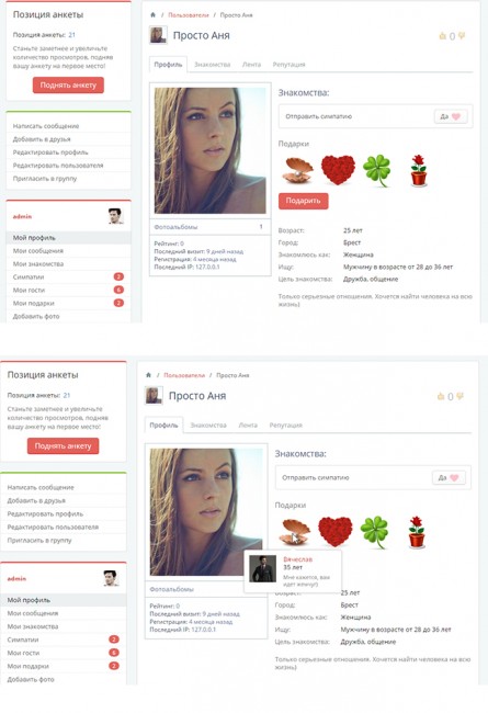 Сайт знакомств, сборка на последней версии InstantCMS 2.18.0,